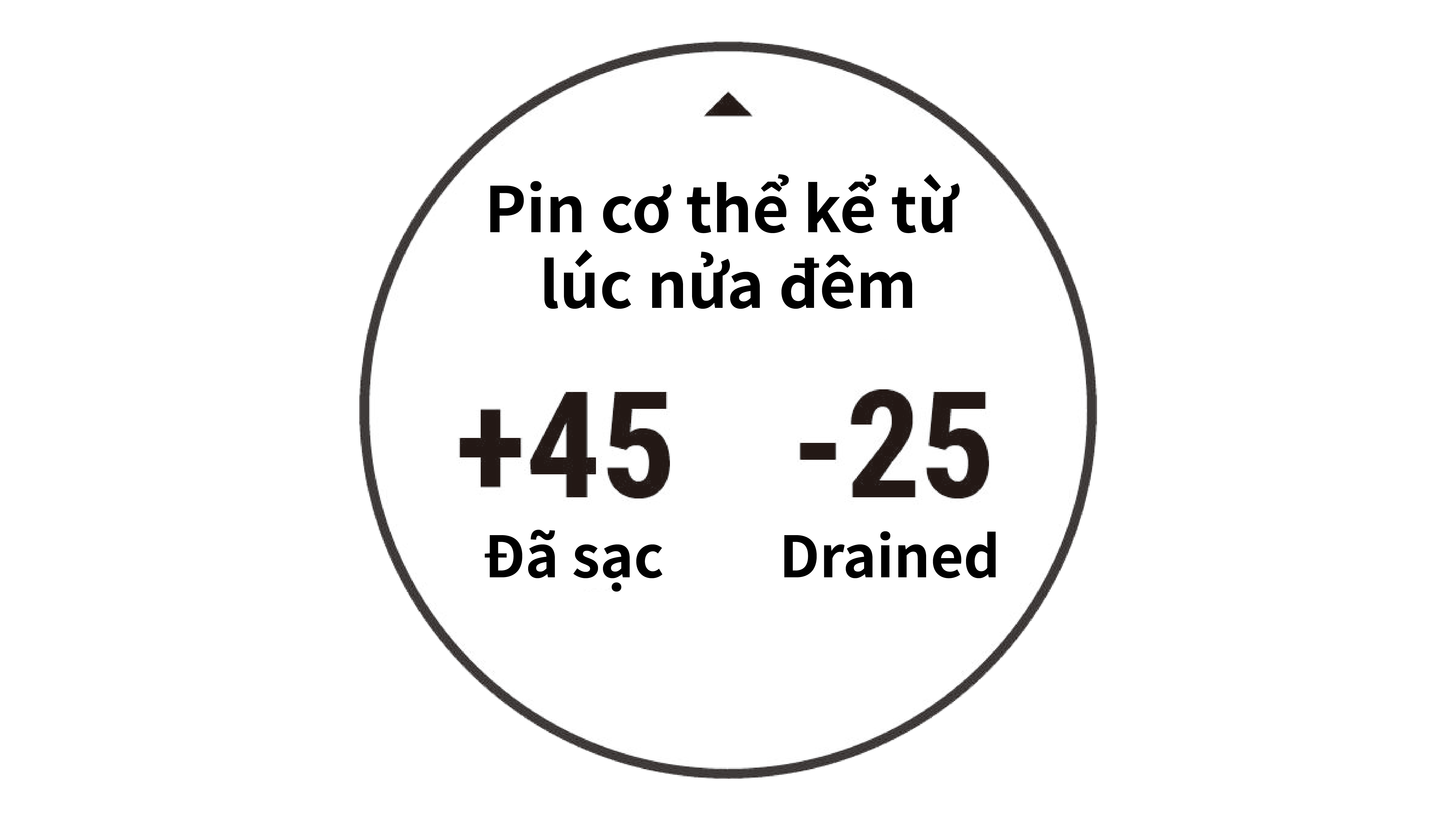 - Chọn DOWN để xem dữ liệu Pin cơ thể của bạn kể từ nửa đêm.