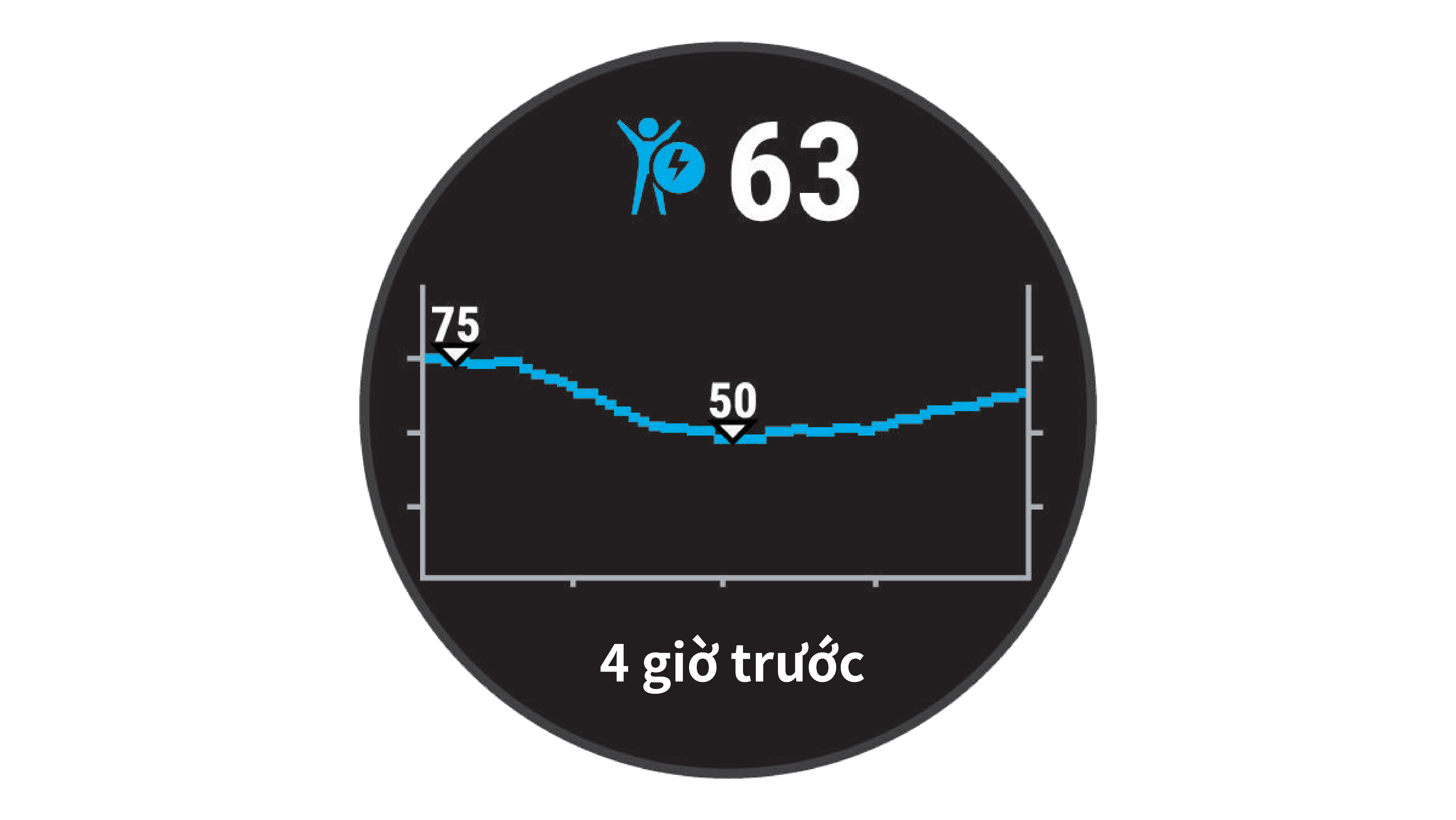 Công cụ Pin cơ thể hiển thị mức Pin cơ thể hiện tại của bạn và biểu đồ mức Pin cơ thể trong vài giờ qua.