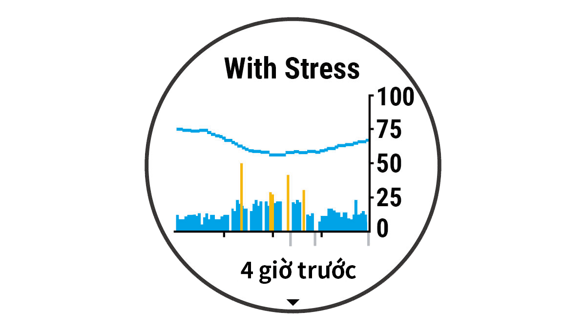 Thanh màu xanh biểu thị thời gian nghỉ ngơi. Thanh màu cam cho thấy thời kỳ căng thẳng. Thanh màu xám biểu thị thời gian bạn quá tích cực để xác định mức độ căng thẳng của bạn.