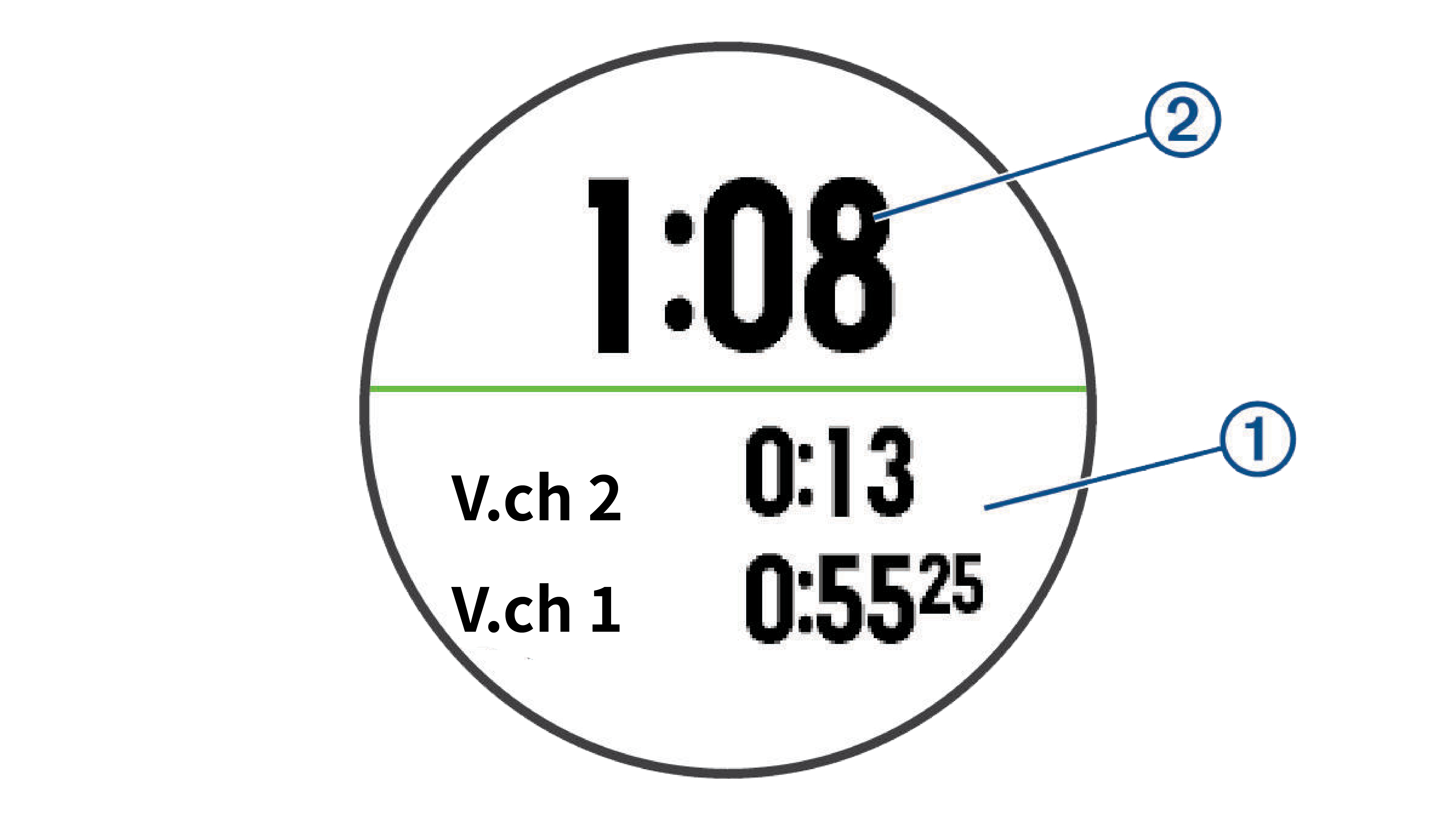 - Chọn V.ch để khởi động lại đồng hồ bấm giờ vòng hoạt động