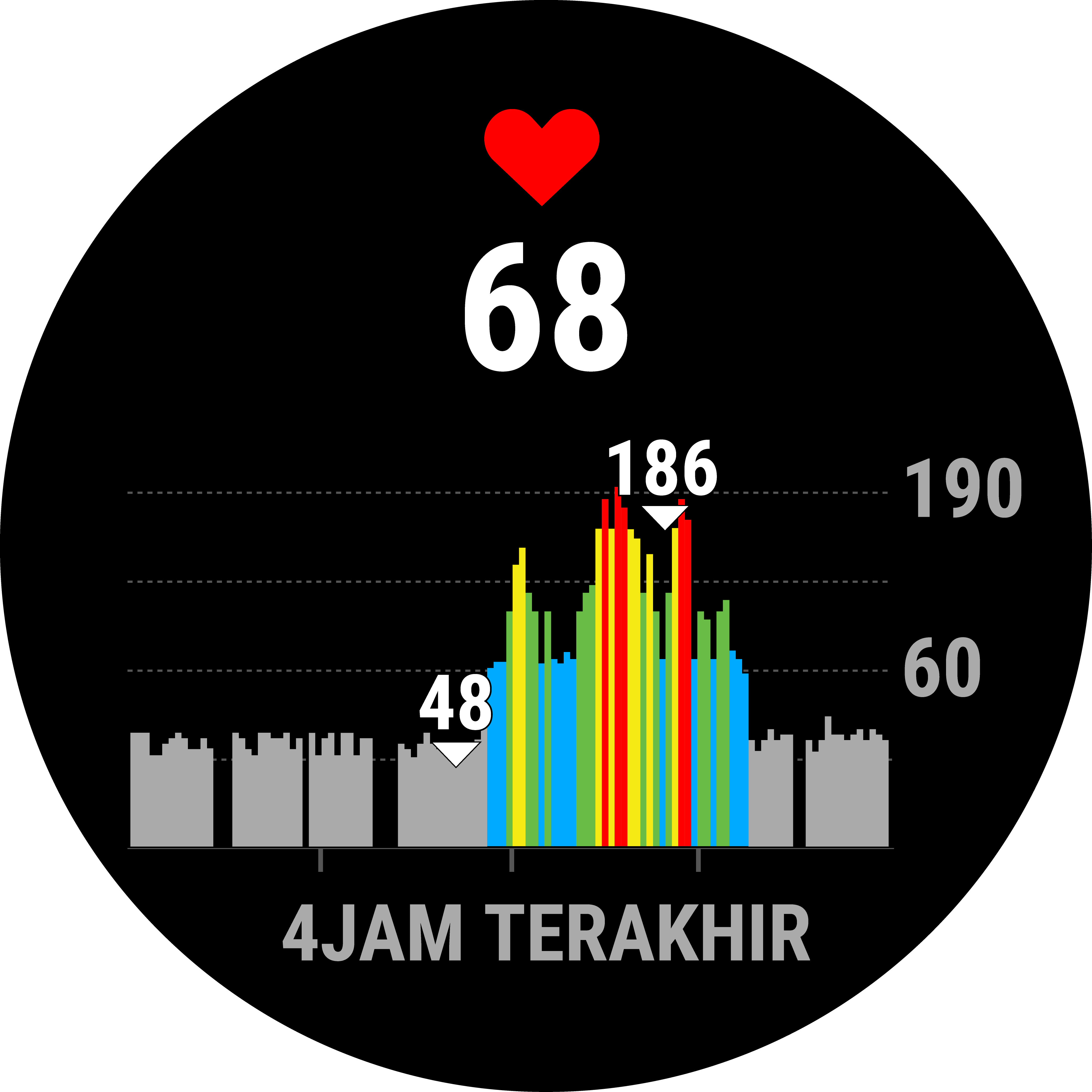 - Dari tampilan jam, tekan UP atau DOWN untuk melihat kilasan denyut jantung.