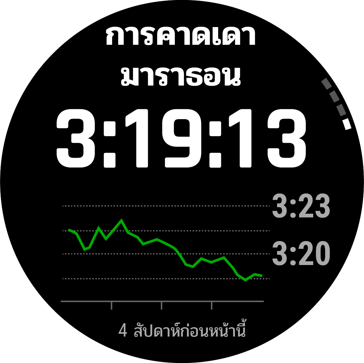หมายเหตุ: ในตอนแรกการคาดการณ์อาจดูไม่ค่อยแม่นยำนัก นาฬิกาต้องการให้วิ่งสองสามรอบก่อนเพื่อเรียนรู้เกี่ยวกับสมรรถนะการวิ่งของคุณ