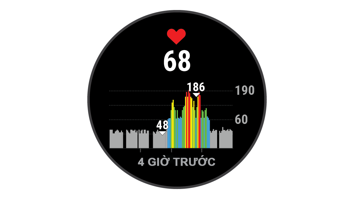 - Từ mặt đồng hồ, nhấn UP hoặc DOWN để xem công cụ tổng quan về nhịp tim.