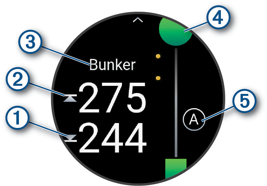 You can view distances to hazards along the fairway for par 4 and 5 holes. Hazards that affect shot selection are displayed individually or in groups to help you determine the distance to layup or carry.
