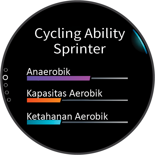 Kemampuan bersepeda adalah pengukuran performa Anda dalam tiga kategori: ketahanan aerobik, kapasitas aerobik, dan kapasitas anaerobik. Kemampuan bersepeda termasuk jenis pesepeda Anda saat ini, seperti penanjak. Informasi yang Anda masukkan di profil pengguna Anda seperti berat badan juga membantu menentukan jenis pesepeda Anda (Menyetel Profil Pengguna Anda, halaman 49).