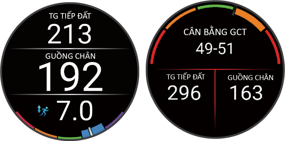 GHI NHỚ: Số liệu thời gian tiếp đất chỉ khả dụng khi bạn sử dụng phụ kiện tính số liệu chạy bộ tương thích.