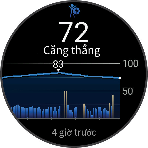 Thanh màu xanh biểu thị thời gian nghỉ ngơi. Thanh màu cam cho thấy thời kỳ căng thẳng. Thanh màu xám biểu thị thời gian bạn hoạt động quá nhiều để xác định mức độ căng thẳng của bạn.