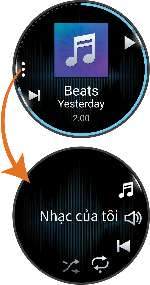 LƯU Ý: Các điều khiển phát lại nhạc có thể trông khác nhau, tùy thuộc vào nguồn nhạc đã chọn.