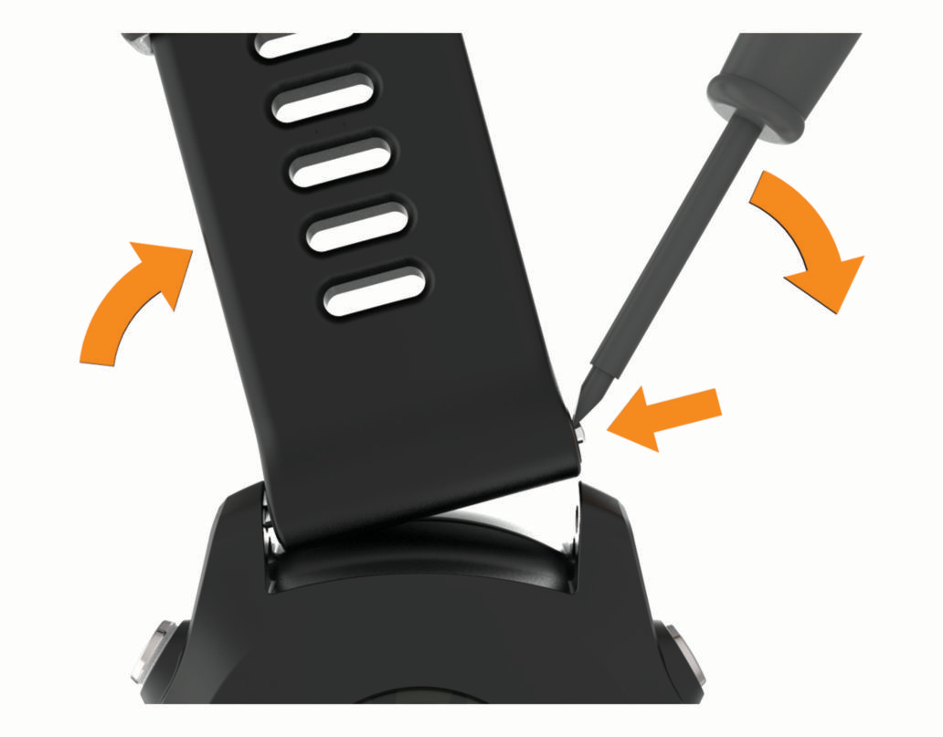 - Để lắp dây đeo QuickFit 22, hãy tháo chốt đồng hồ khỏi dây đeo Forerunner, thay chốt đồng hồ trên thiết bị và ấn dây đeo mới vào vị trí.