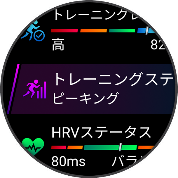 ウィジェット一覧からヘルスデータやアクティビティ、内蔵センサーなどの情報にすばやくアクセスできます。デバイスとスマートフォンをペアリングすると、天気やカレンダーのイベントなどのスマートフォンからの情報を確認できます。