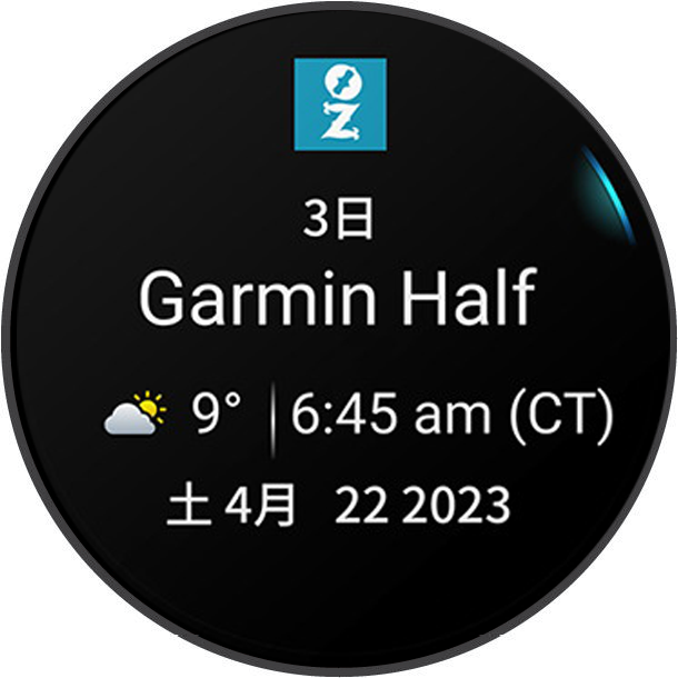 Garmin Connectのカレンダーにレースイベントを追加すると、デバイスのプライマリレースウィジェットでイベントを確認できます。( ウィジェット)イベント日は365日以内で設定します。イベント日までのカウントダウンと、予想タイム(ランニングイベントのみ)、天気情報が表示されます。