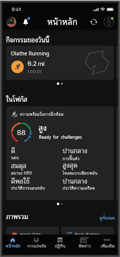 วิเคราะห์ข้อมูลของคุณ: คุณสามารถดูข้อมูลที่มีรายละเอียดมากขึ้นเกี่ยวกับกิจกรรมของคุณ รวมถึงเวลา ระยะทาง ระดับความสูง อัตราการเต้นหัวใจ แคลอรี่ที่ถูกเผาผลาญ รอบขา running dynamics ภาพแผนที่จากมุมสูง แผนภูมิแสดงเพซและความเร็ว และรายงานที่ปรับแต่งได้