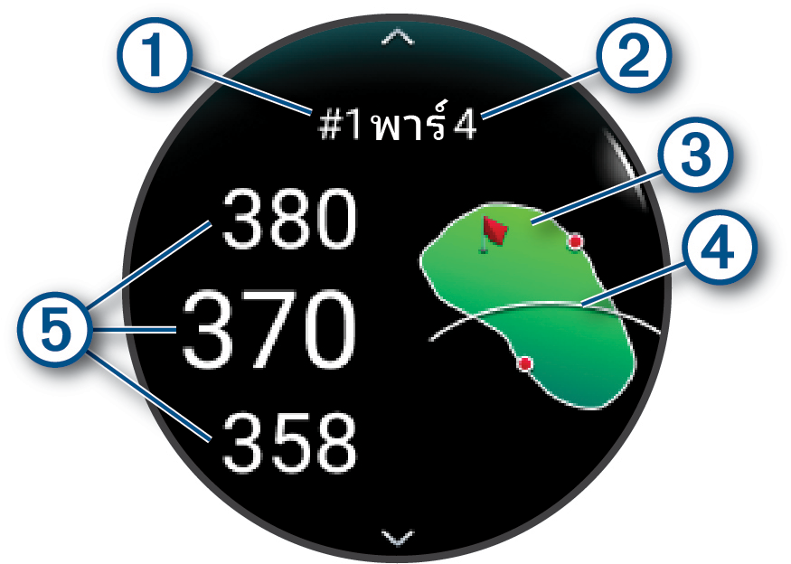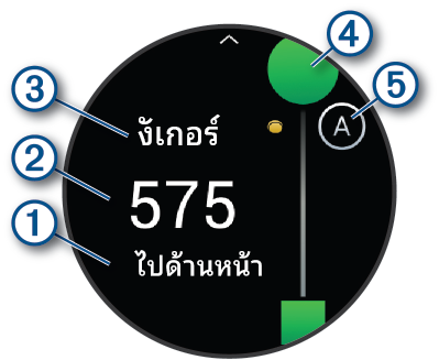 หมายเหตุ: หากคุณอยู่ที่หลุมพาร์ 3 ข้อมูลของแฟร์เวย์ไม่ปรากฏ