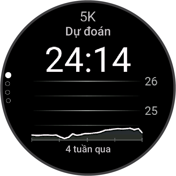LƯU Ý: Các dự đoán có thể không chính xác lúc ban đầu. Đồng hồ yêu cầu một số lượt chạy bộ để tìm hiểu về hiệu suất chạy bộ.