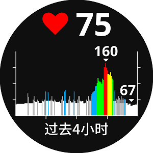 查看心率小工具查看您的目前心率(bpm)与过去4小时的心率图表。 在手表模式,按下 UP 或 DOWN 键,查看心率工具。备注:您可能需要将小工具添加到工具列表(自定义工具列表,第11页)。 按下 START 查看过去七天的平均静息心率。 主页心率功能腕式心率查看心率小工具