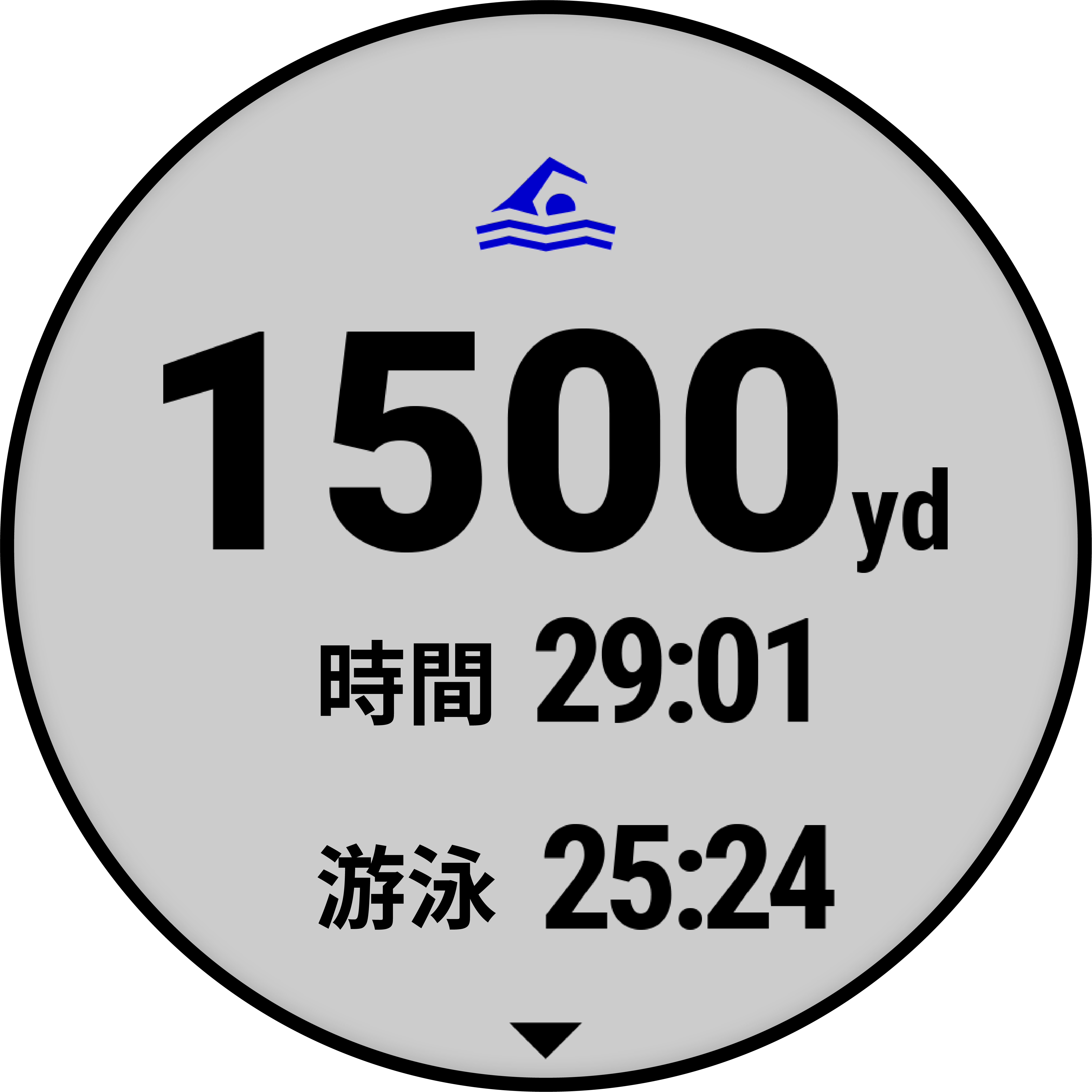 - 若要儲存游泳活動並重設碼表,請選擇 儲存。您可以檢視活動摘要,或按下 DOWN 鍵檢視更多數據。