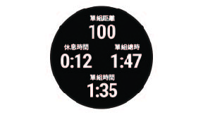 - 在休息畫面,按下 LAP 鍵以重新開始游泳活動並建立一個新的游泳區間。