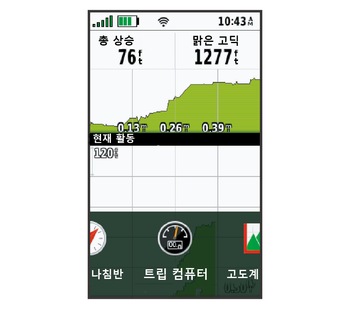 메인 메뉴: 메인 메뉴에서 항목을 이동하거나 추가하거나 삭제할 수 있습니다(21 페이지, 메인 메뉴 사용자 설정하기).