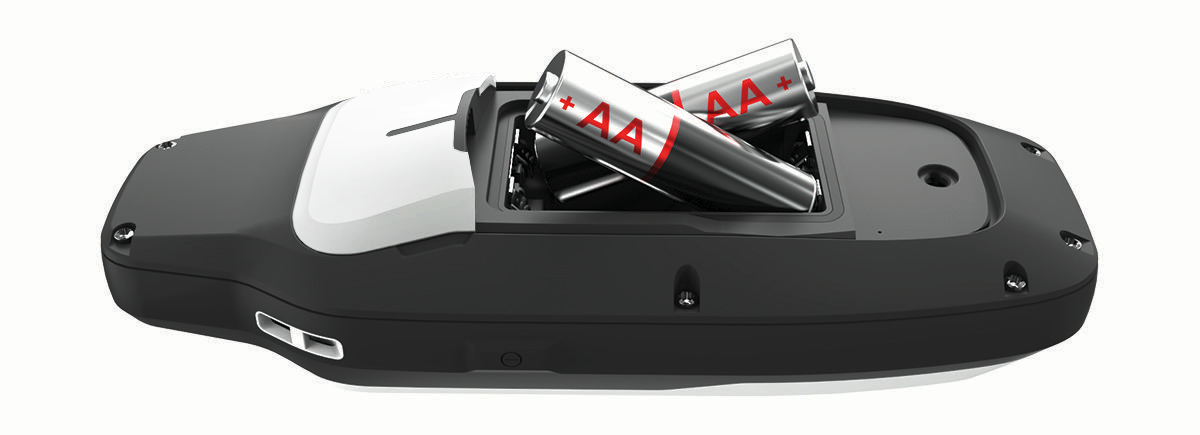 安裝電池注意在安裝電池或開啟裝置前,請先徹底擦乾並待裝置和電池槽風乾以免造成損壞。本手持式裝置需兩顆 AA 電池(未隨附)。建議使用 1.5 V 標稱電壓的鋰電池以達到最佳效果。請勿使用超過此電壓的鋰電池。備註:不同種類的 AA 電池有不同的電壓規格。如要獲得最佳表現,請選用 Garmin 官方建議的電池種類(產品規格)。 以逆時鐘方向旋轉 D 型扣環,再向上拉開背蓋。 依正負極將兩顆 AA 電池放入。 將背蓋蓋回,並順時鐘轉緊 D 型扣環。 首頁產品介紹裝置介紹安裝電池