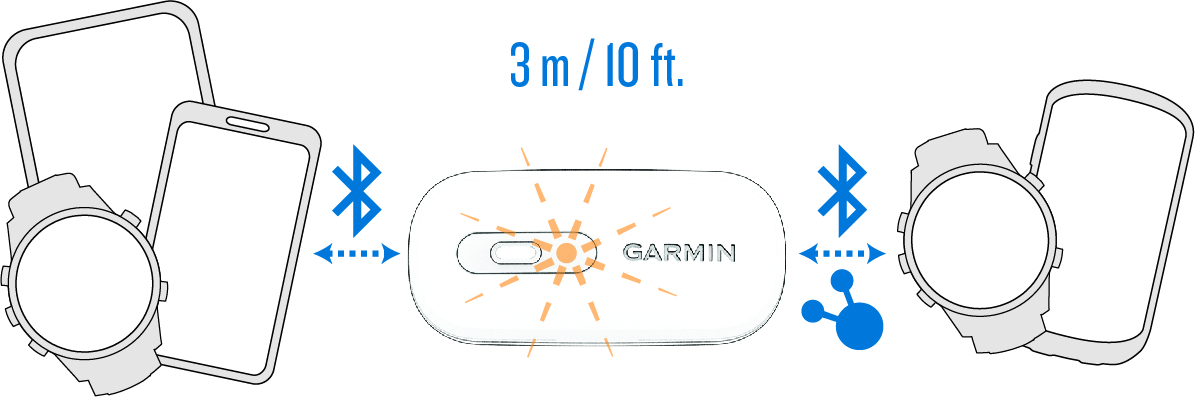CATATAN: Lampu LED akan berhenti berkedip setelah 2 menit. Anda dapat menekan tombol untuk menyalakan ulang LED (Menyesuaikan Pengaturan HRM 200 di Aplikasi Garmin Connect).