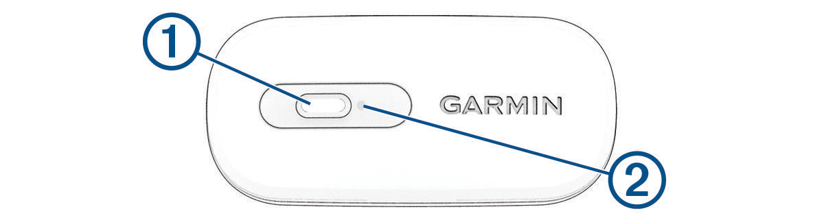 )します。 - 注意:LEDの点滅は2分後に停止します。LEDの点滅を再開するには、ボタンを押してください。( Garmin ConnectアプリでHRM 200の設定をカスタマイズする)