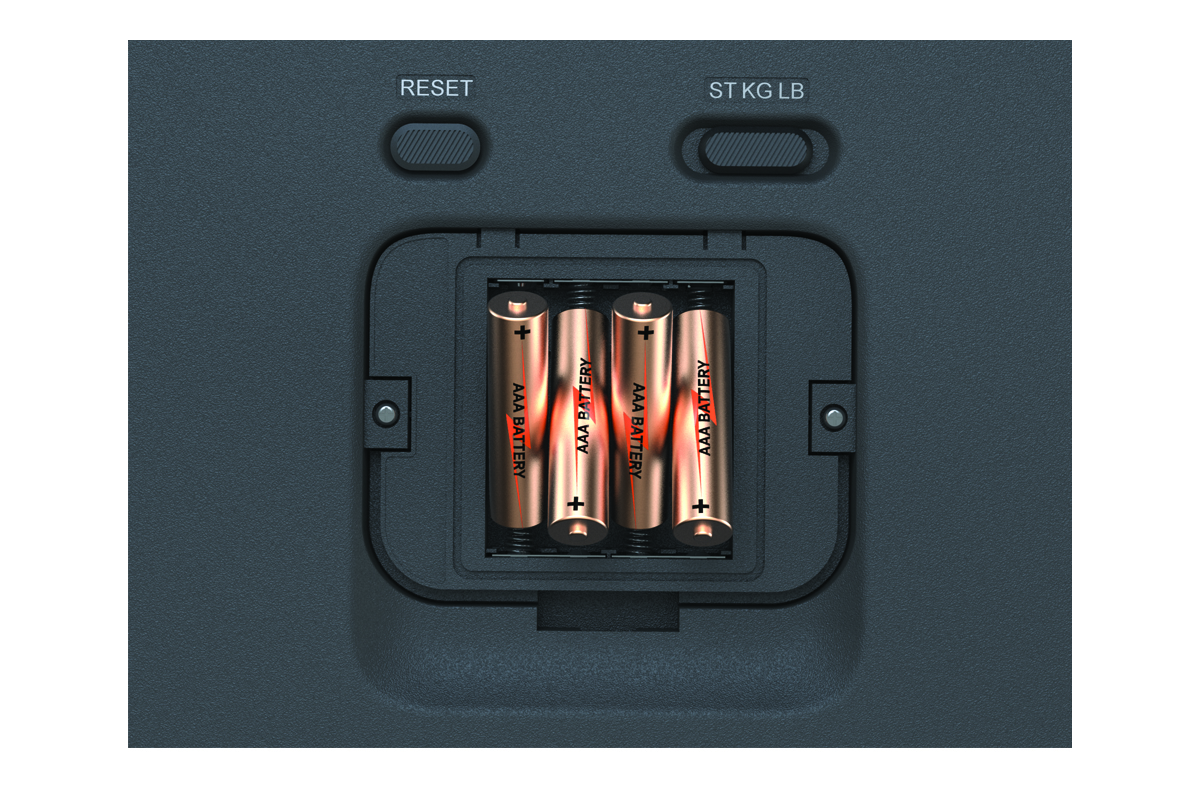 安裝電池裝置需四顆 4 號(AAA)電池。 打開電池蓋。 依正負極將四顆 4 號(AAA)電池放入。 將電池蓋蓋回。 電池安裝完成後,LCD 螢幕的無線指示會閃爍並顯示 ,表示裝置已就緒。首頁開始使用裝置介紹安裝電池