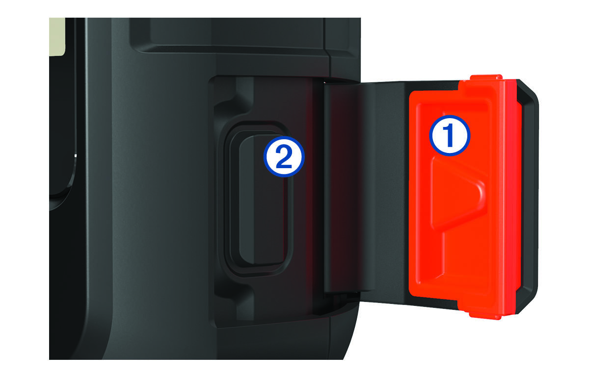 - SOS 버튼 ②에서 보호 캡 ①을 올립니다.
