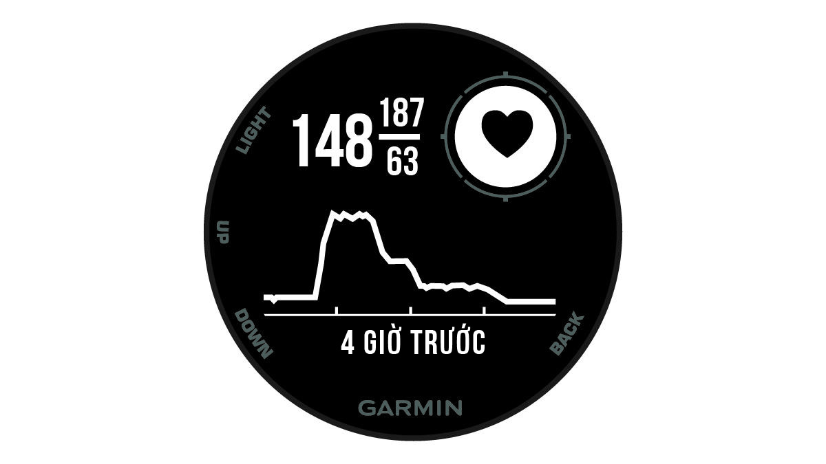 Công cụ hiển thị nhịp tim hiện tại của bạn theo nhịp đập mỗi phút ̣(bpm) và đồ thị nhịp tim trong 4 giờ trước.