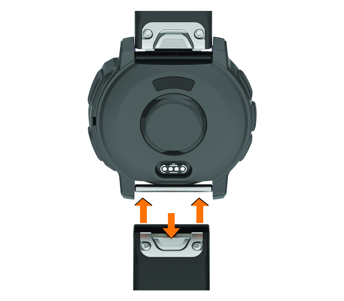 - Để lắp dây đeo QuickFit 22, tháo chốt đồng hồ khỏi dây Instinct 2 Solar ONE PIECE, thay thế chốt đồng hồ trên thiết bị, và lắp dây mới vào vị trí.