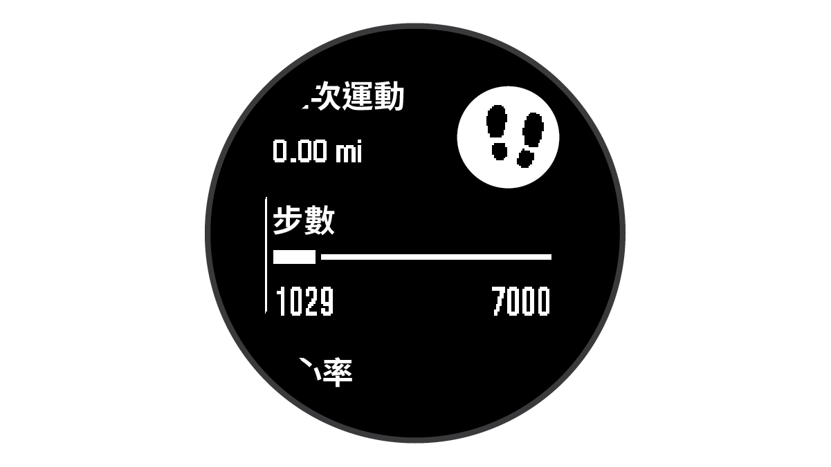 檢視快覽循環清單快覽可讓您快速取用健康數據、活動資訊、內建感測器等。手錶在配對後,即可檢視手機的資料,例如通知、天氣或行事曆。 按下 UP 鍵或 DOWN 鍵。 手錶滾動瀏覽快覽循環清單,並顯示各快覽的摘要資訊。 按下 GPS 鍵以檢視更多資訊。 選擇一個選項:按下 DOWN 鍵以檢視快覽的詳細資訊。按下 GPS 鍵以檢視快覽的更多選項與功能。 首頁外觀概覽檢視快覽循環清單