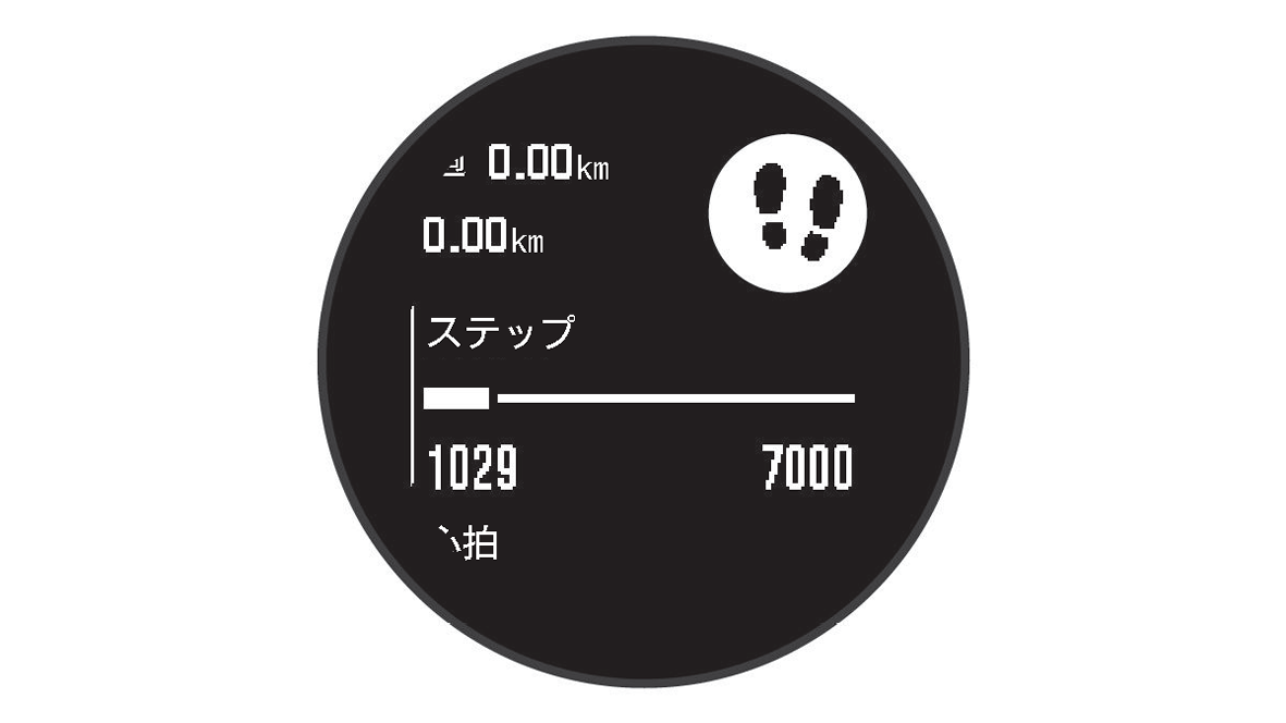 - ウォッチフェイスページでDOWNキーを押します。ウィジェット一覧が表示されます。