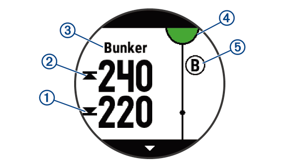 Measure Shot: Shows the distance of your previous shot recorded with the Garmin AutoShot feature (). You can also manually record a shot ().