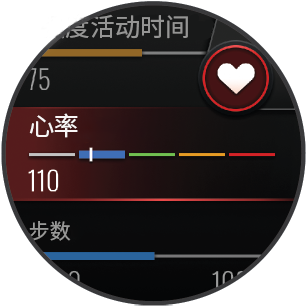 查看小工具小工具可以快速访问健康数据、活动信息、内置传感器等。与手机配对后,可以查看手机中的数据,例如健康资料、天气、日历等。 在时间页面,按 DOWN 键查看小工具清单。 按 GPS 键了解更多信息。 选择一个选项:按 DOWN 按键可查看小工具的详细信息。按 GPS 键查看小工具的其他选项和功能。 主页个性化设置概览查看小工具