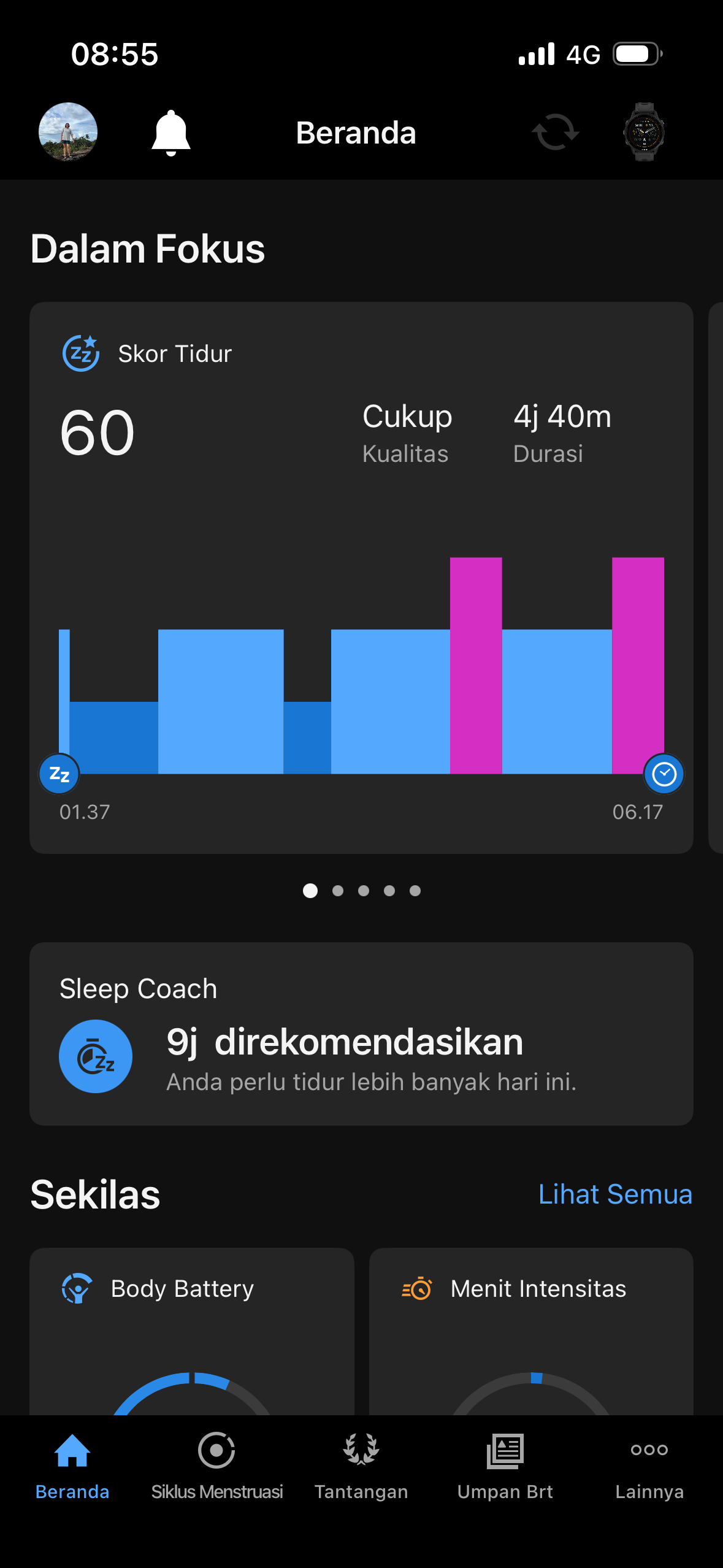 TIPS: Untuk hasil yang paling akurat, Garmin merekomendasikan Anda sering melakukan sinkronisasi dengan akun Garmin Conenct Anda.