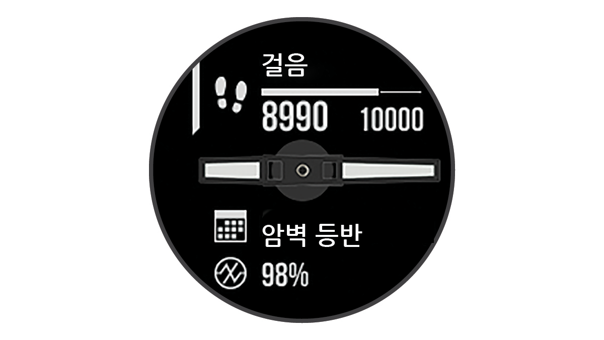 요약 정보는 건강 데이터, 활동 정보, 내장 센서 등에 대한 빠른 액세스를 제공합니다. 시계를 페어링하면 핸드폰에서 알림, 날씨, 캘린더 이벤트와 같은 데이터를 볼 수 있습니다.