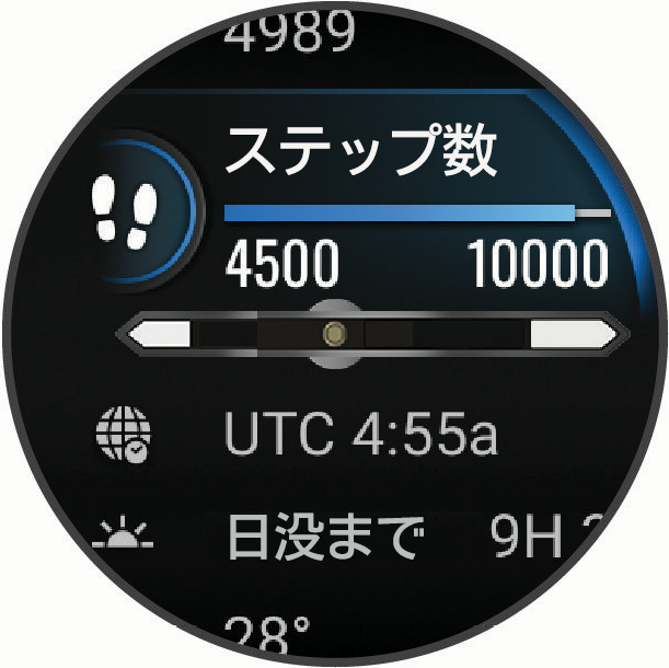 ウィジェット一覧からヘルスデータやアクティビティ、内蔵センサーなどの情報にすばやくアクセスできます。デバイスとスマートフォンをペアリングすると、ヘルスデータや天気、カレンダーのイベントなどのスマートフォンからの情報を確認できます。