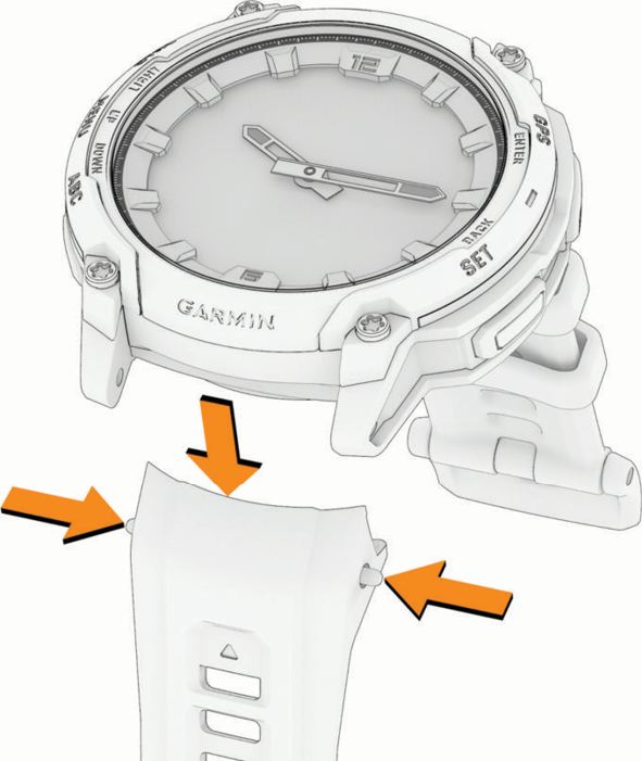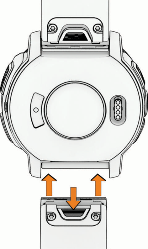 - QuickFitバンドに交換する場合は、対応するピンをデバイスに取り付け、新しいバンドをピンに取り付けます。