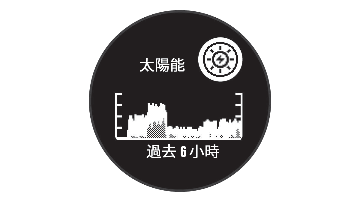 裝置將顯示過去 6 小時接收太陽能的強度變化圖表。