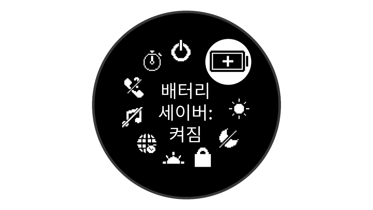 컨트롤 메뉴는 방해 금지 모드 켜기, 배터리 세이버 기능 켜기, 시계 전원 끄기처럼 자주 사용되는 기능에 대한 빠른 접근을 제공합니다. 무선 연결을 끊고 GPS 위치 추적을 피하려면 스텔스 모드를 활성화할 수 있습니다. 나이트비전 모드도 사용가능합니다.