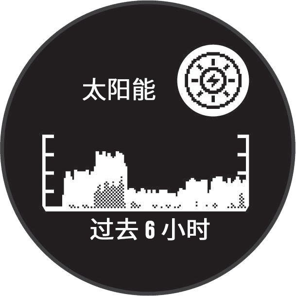 在表盘页面,按下 UP 键或 DOWN 键翻页到太阳能小工具