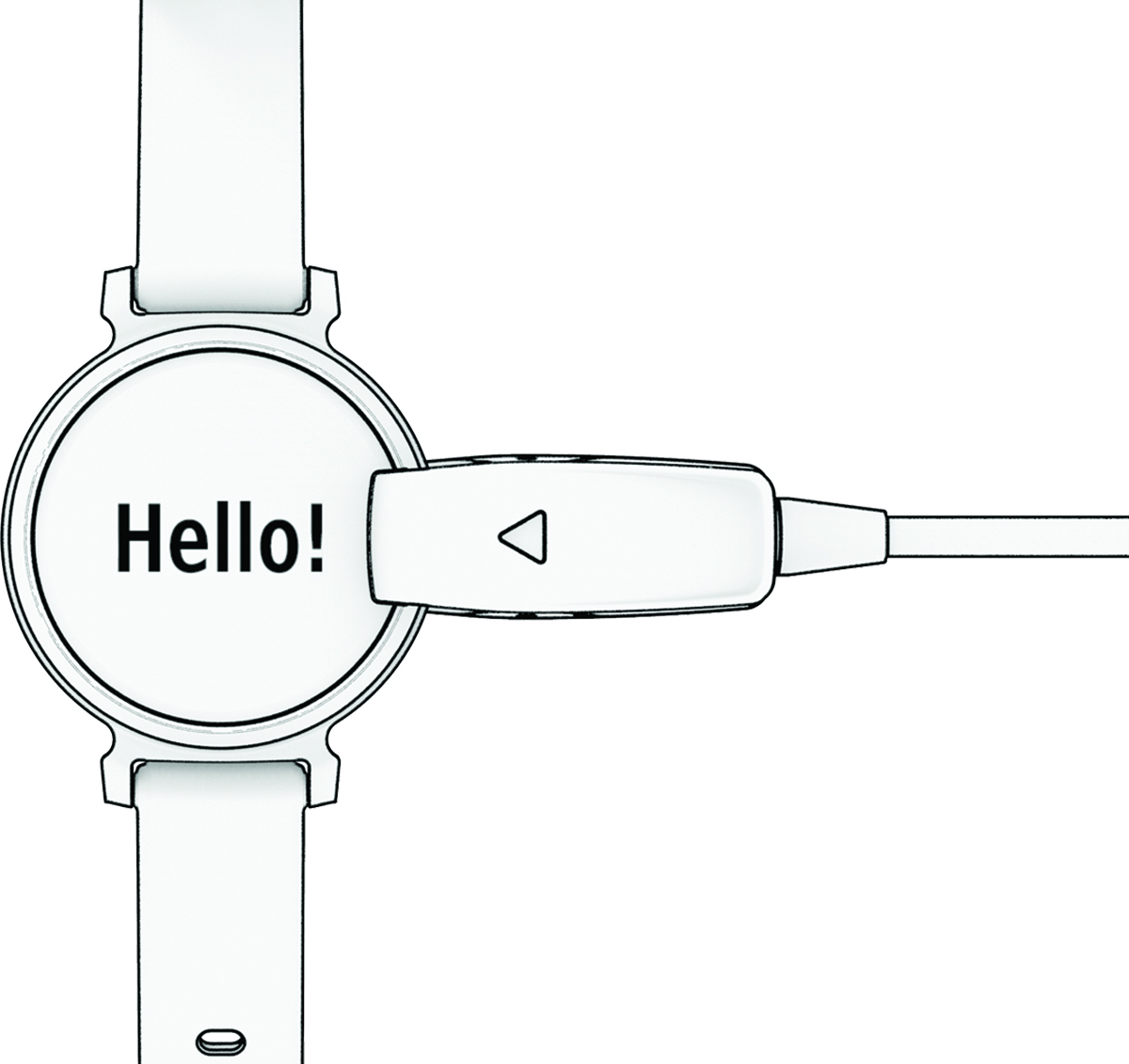 . - Plug the USB cable into a power source to turn on the watch (Charging the Watch).