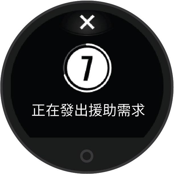 發出援助需求 重要援助通知為輔助功能,不應以此做為取得緊急救援的主要方式。Garmin Connect app 不會代表您聯絡緊急服務。注意使用援助功能之前,您必須先在 Garmin Connect app 中設定緊急聯絡人(新增緊急聯絡人)。您已配對的手機必須具備網路方案且位於網路資料傳輸的覆蓋範圍內。您的緊急聯絡人必須能接收電子郵件或或簡訊(可能產生標準簡訊費用)。 快速確實點按觸控螢幕直到手錶振動。 出現倒數計時器畫面。 如有需要,在倒數計時結束前選擇 以取消訊息。 首頁安全與追蹤功能發出援助需求