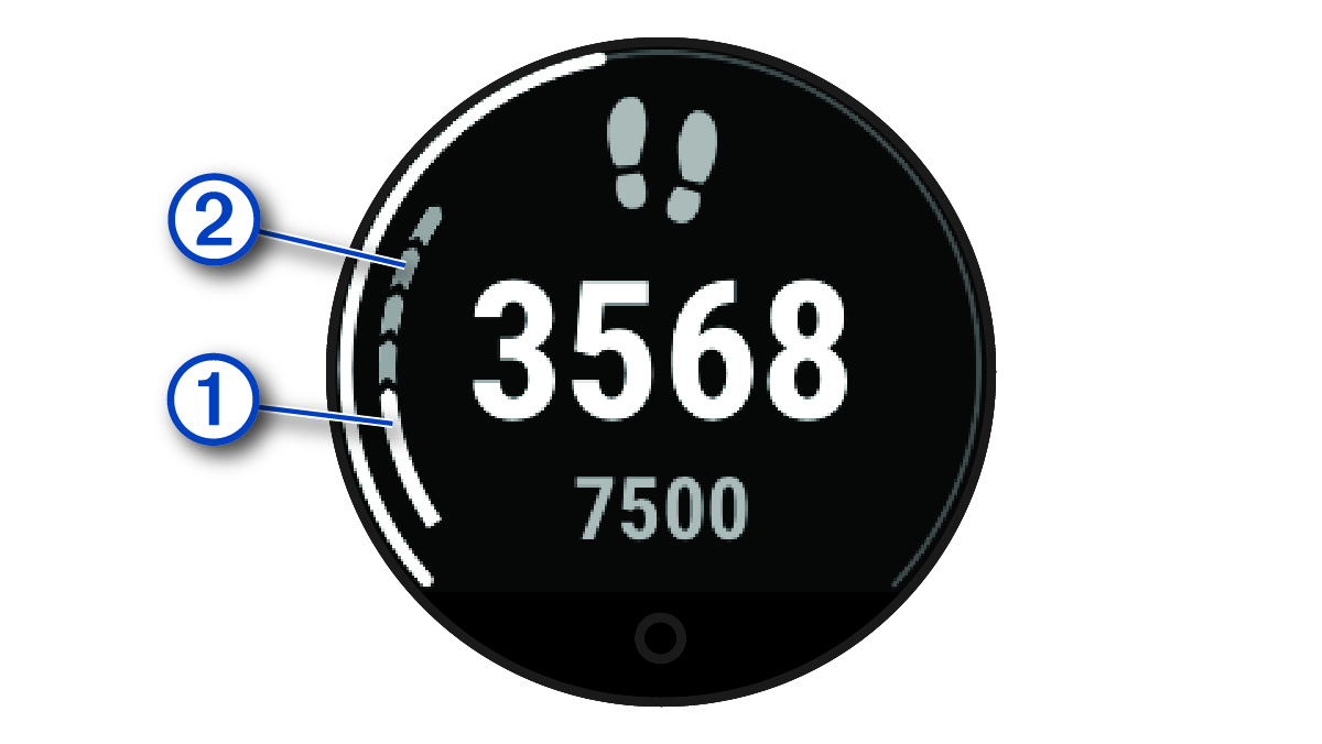久坐警示久坐不動可能會對身體的代謝機能產生不良的影響。久坐警示功能可以提醒您多活動。當您有一個小時沒有活動時,螢幕會出現警示條 ①。每多靜止 15 分鐘就會增加一格 ②。起身走一小段距離就能重置久坐警示,或您可以自訂久坐警示(自訂久坐警示)。首頁Widget 小工具久坐警示