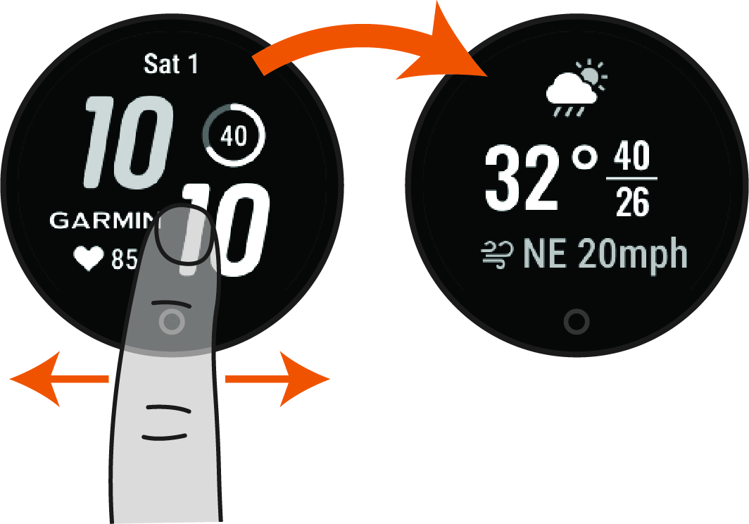 Đồng hồ của bạn được tải trước các công cụ để cung cấp thông tin nhanh. Bạn có thể vuốt màn hình cảm ứng để cuộn qua các công cụ. Một số công cụ yêu cầu kết nối Bluetooth với điện thoại tương thích.