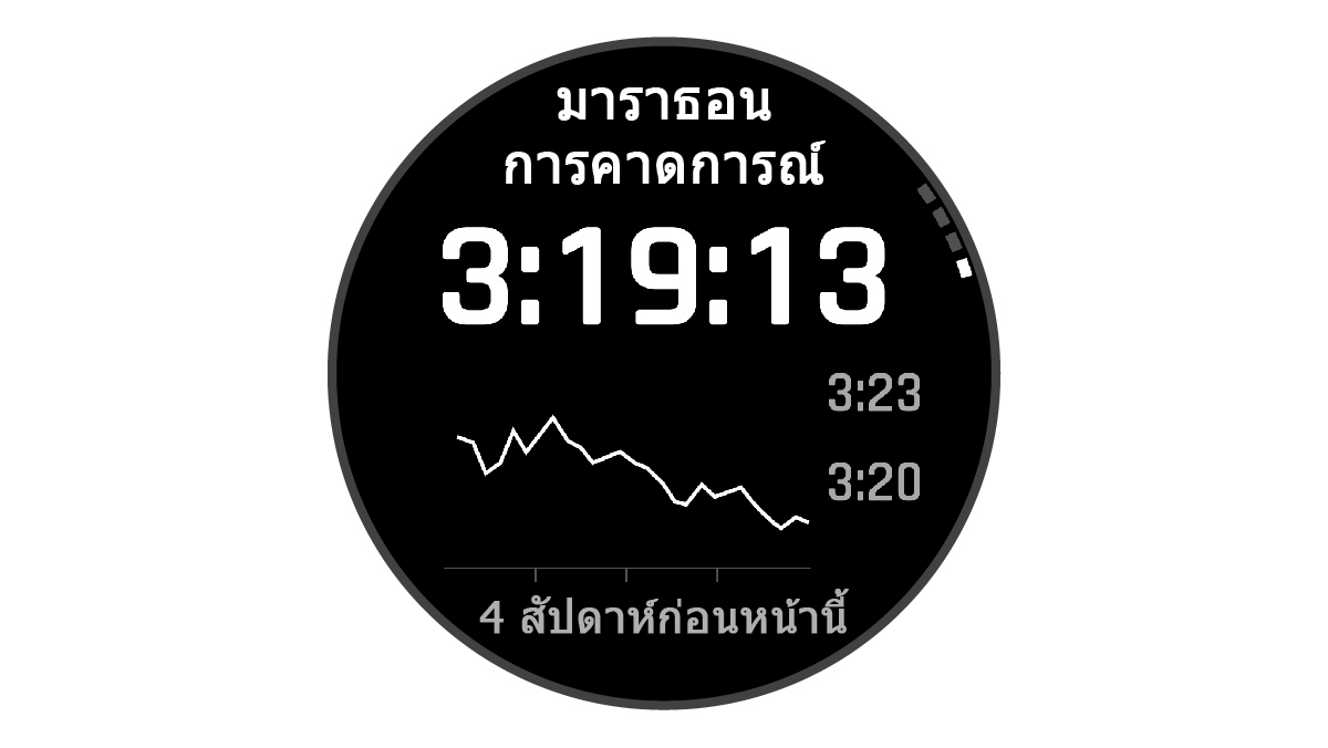 หมายเหตุ: ในตอนแรกการคาดการณ์อาจดูไม่ค่อยแม่นยำนัก นาฬิกาต้องการให้วิ่งสองสามรอบก่อนเพื่อเรียนรู้เกี่ยวกับสมรรถนะการวิ่งของคุณ
