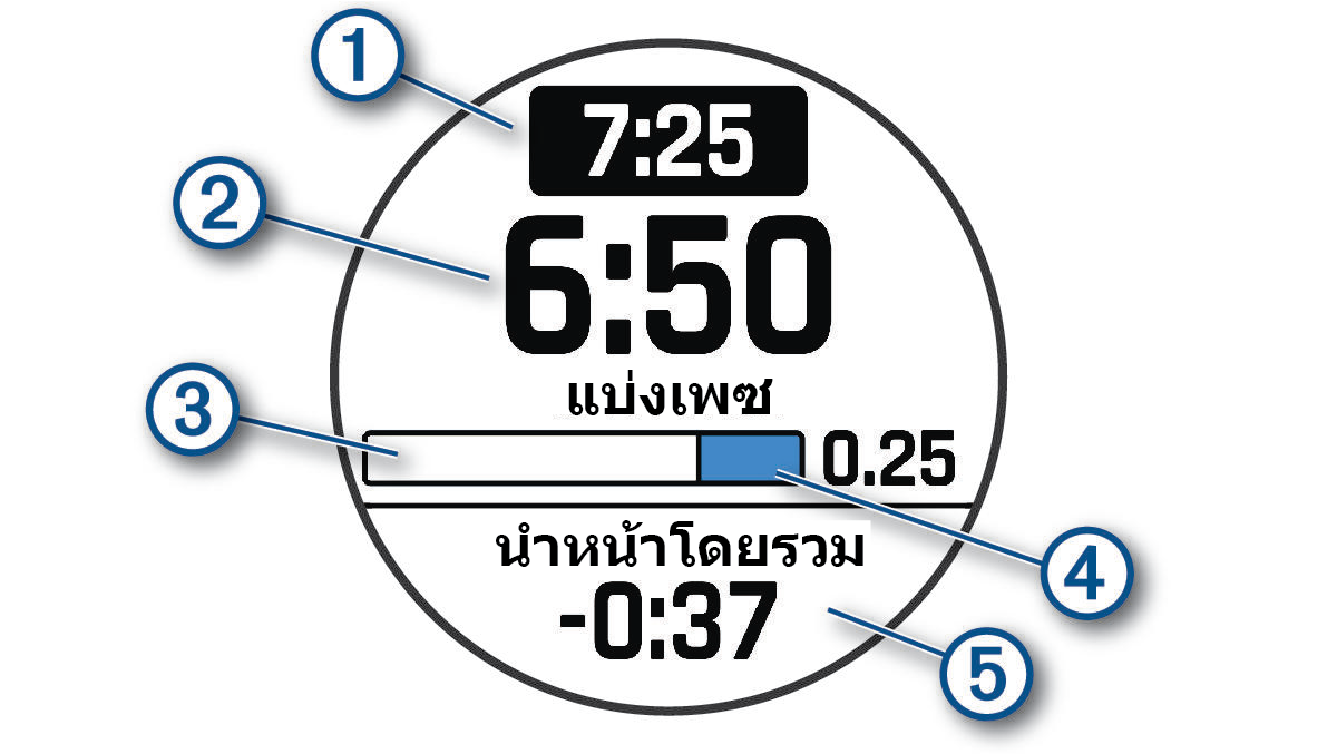 ข้อแนะนำ: คุณสามารถกด MENU ค้างและเลือก หยุด PacePro > ใช่ เพื่อหยุดแผน PacePro ตัวจับเวลากิจกรรมจะยังคงวิ่งต่อ