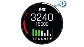 自动目标设备会根据您之前的活动级别自动创建每日步数目标。当您在白天走路时,设备会显示您朝向每日目标的进度 ①。假如不想使用此功能,您也可以在Garmin Connect上自定义个人目标步数。主页训练活动追踪自动目标
