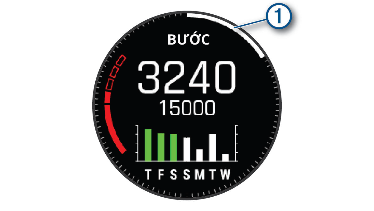 Thiết bị tự động tạo ra mục tiêu số bước hàng ngày, dựa trên các mức độ hoạt động trước đó của bạn. Khi bạn di chuyển trong ngày, thiết bị cho biết sự tiến triển của bạn hướng đến mục tiêu .
