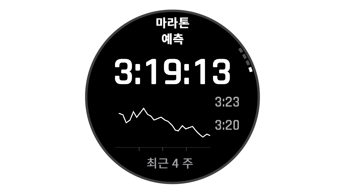 참고: 처음에는 예상 시간이 부정확할 수 있습니다. 워치에서 러닝 성과를 파악하려면 러닝을 수 차례 시도해야 합니다.