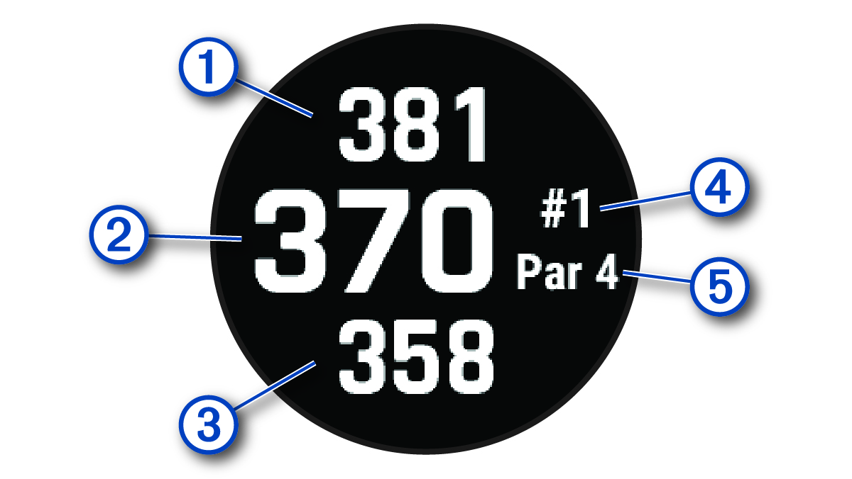 그린 중앙 또는 선택된 핀 위치까지의 거리를 표시합니다. |